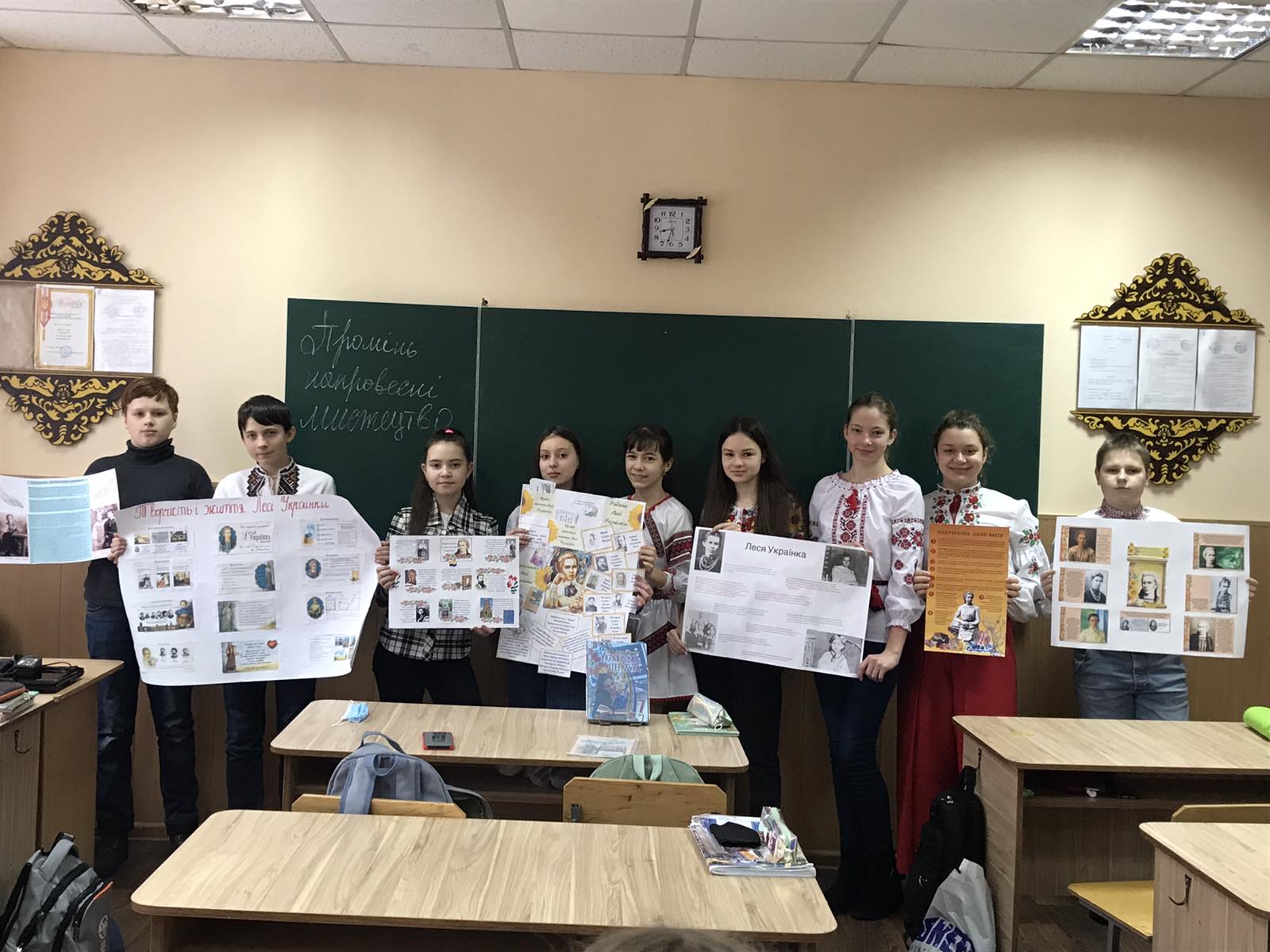 25 лютого для учнів 7-Б класу було проведено захід "Леся Українка - дочка Прометея". Огарьова Людмила Михайлівна презентувала цікаву вікторину "«Що ми знаємо про Лесю Українку?», а семикласники продемонстрували власні проєкти про геніальну доньку українського народу.